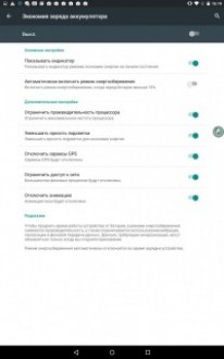 В разделе «экономии заряда батареи» можно выбрать параметр, выключение которого позволит несколько уменьшить расход энергии, к примеру, доступ к Сети или GPS-сервисам.